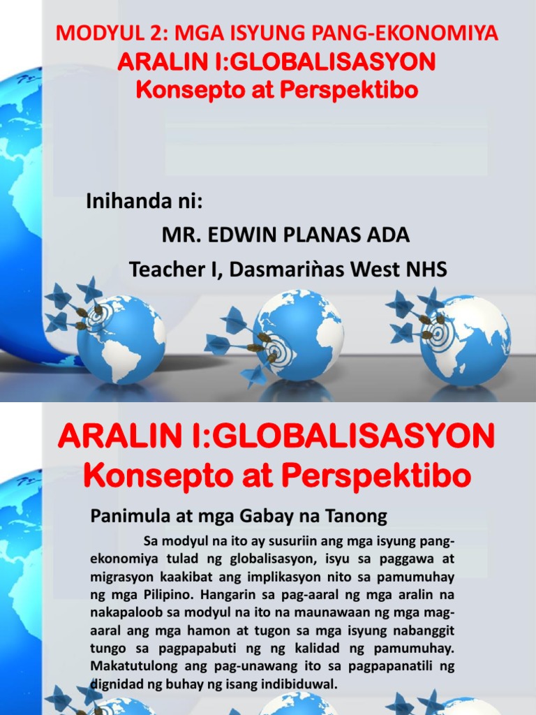 Jul 05 2021 Gaya ng isang barya coin ang globalisasyon ay may dalawang mukha. Ang konsepto na ito ay may maraming ibat ibang mga kahulugan. 5 CONCEPTS LIMANG KONSEPTO GLOBALISASYONG PANG EKONOMIYA GLOBALISASYONG PANG EKONOMIYA Ang globalisasyong.