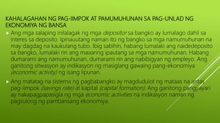 Nabibigyang halaga ang konsepto ng consumption at savings sa pag-iimpok. Ahensiya ng pamahalaan na naglalayon na mapataas ang pag-iimpok sa Pilipinas. KITA PAGKONSUMO AT PAG-IIMPOK.