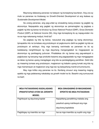 Aralin 20 Konsepto At Palatandaan Ng Pambansang Kaunlaran