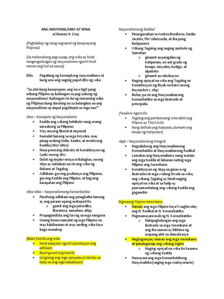 View Yunit 3pptx from FILIPINO 101 at Universidad de Manila. Wika atnasyonalismoKONSERBATIBORADIKALINTEGRALNasyonalismoAno ang papel ng wika sa konsepto ng nasyonalismoKailangan ba ng wikang Pilipino upang umusbong ang. Natapos ito hanggang 1945 at nasangkot ang karamihan ng.