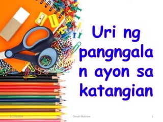5th - 6th grade. Ang leksyon natin ngayong araw ay tungkol sa Uri ng Pangngalan Ayon sa Konsepto Ang pangngalan ay maaaring mauri ayon sa sumu. -ito ay isang bahagi ng pananalita na nagsasaad ng ngalan ng tao bagay pook o lugar hayop pangyayari damdamin o ideya.