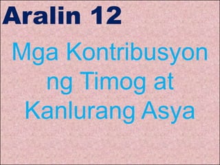 ANG ASYA SAPANANAW NG NG MGA KANLURANIN PINAGMULAN NG SALITANG ASYA ANG ASYA SA PANANAW NG MGA ASYANO. Kasaysayan ng Daigdig Araling Panlipunan Modyul para sa Mag-aaral I. Kasaysayan at Pinagmulan ng Terminong Asya Pananaw sa Pag aaral ng Asya Rehiyon ng Asya Salik sa Paghahating Heograpiko ng Asya.
