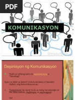 KOMUNIKASYON - ang akto ng pagpapahayag ngideya sa pamamagitan ng pasalita o pasulat na paraan. Ito ay kinasasangkutan ng mahigit 20. Webster - isang intensyonal o konsyus na paggamit ng anumang simbolong tunog o anumang uri ng simbolo upang makapagpadala ng katotohanan ideya damdamin o emosyon mula sa isang indibidwal tungo.