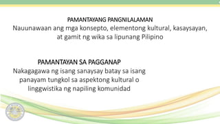 Nakapagbibigay ng kahulugan ng mga konseptong pangwika a. MGA KONSEPTONG PANGWIKA MGA LAYUNIN. INTRO- GRADE 11 TOPICS mahahalagang paunawa-paalalapptx.