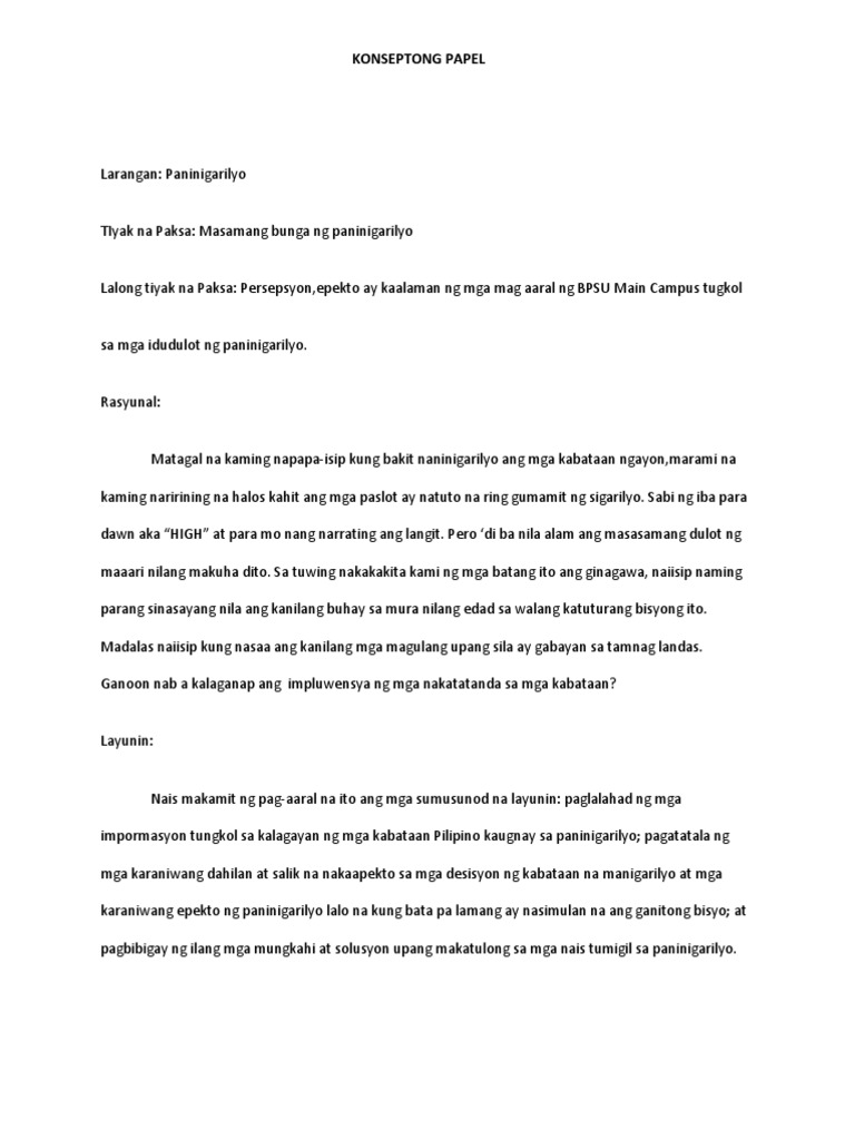 Subalit ang edukasyon ay isa sa pa rin sa importanteng parte ng pagkatao ng isamg indibidwal. So this tool was designed for free download documents from the internet. Higit sa paglalahad ng impormasyon at datos binibigyang diin ng konseptong papel ang ibat ibang katuturan o kahalagahan ng pagiging malay sa napiling isyu.