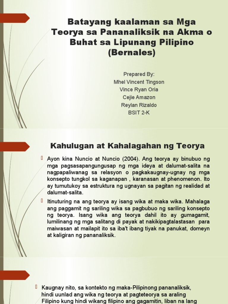 Teorya Konsepto Pananaw Sa Pilipino