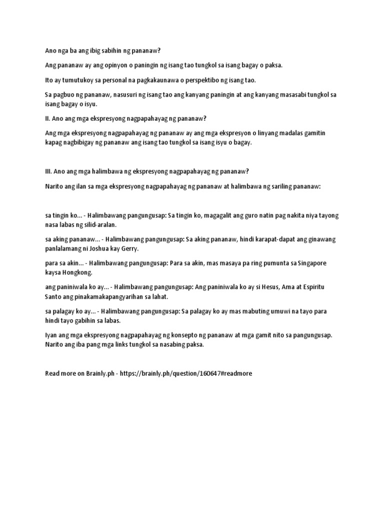 Ekspresyong Sa Pagpapahayag Ng Konsepto O Pananaw Pdf