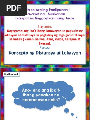 Cot Ppt Konsepto Ng Distansya At Lokasyon Pdf
