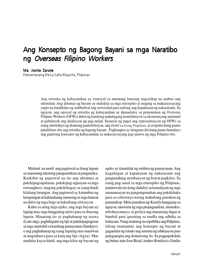 Ang Konsepto Ng Bagong Bayani Sa Mga Naratibo Ng Overseas Filipino Workers Pdf Pdf